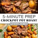 There is nothing more comforting than a big pot roast with hearty vegetables. This is the easiest, 5-minute prep Crock Pot Chuck Roast recipe. A full meal in one pot and slow cooked so the meat literally falls apart and melts in your mouth and yet requires minimal effort!
