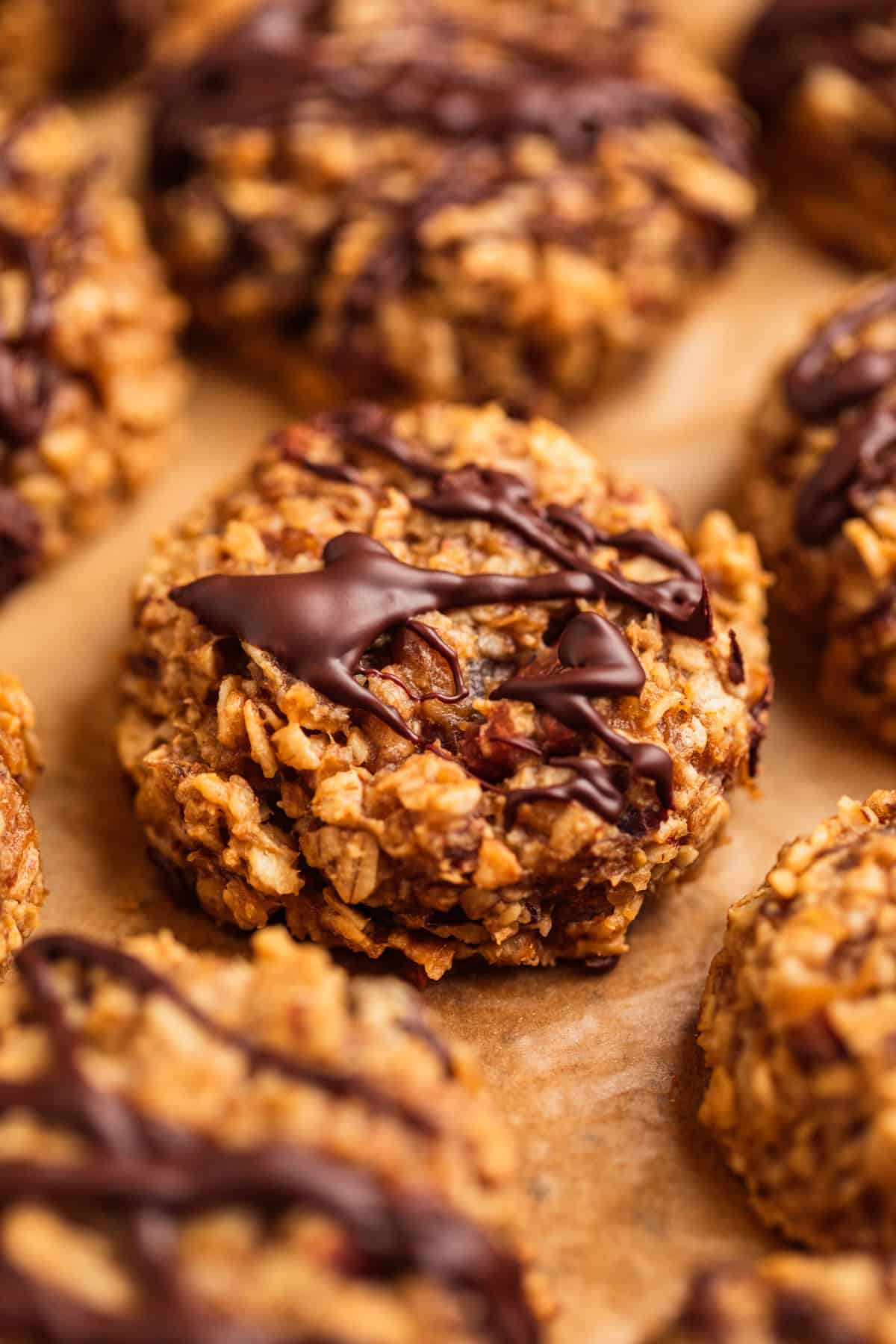Cookies for breakfast are always a great idea! These breakfast oatmeal cookies with banana and peanut butter are a hearty and nourishing way to start the day. Prepped in less than 15 minutes and full of peanut butter, wholesome oats, banana and maple sweetened. Add nuts, seeds, chocolate chips and a drizzle of chocolate over top to make these one of a kind. 100% kid approved!